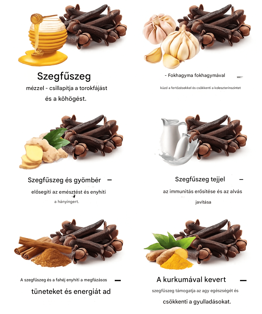 A szegfűszeg több, mint egy ünnepi fűszer. Ezek a kicsi, aromás rügyek tele vannak antioxidánsokkal, gyulladáscsökkentő vegyületekkel és illóolajokkal, amelyek szinte minden rendszert támogatnak a szervezetben. Íme 20 hatékony módja annak, hogy a szegfűszeget más természetes összetevőkkel kombináld az egészséged javítása érdekében – és hogyan készítsd el helyesen az egyes recepteket.